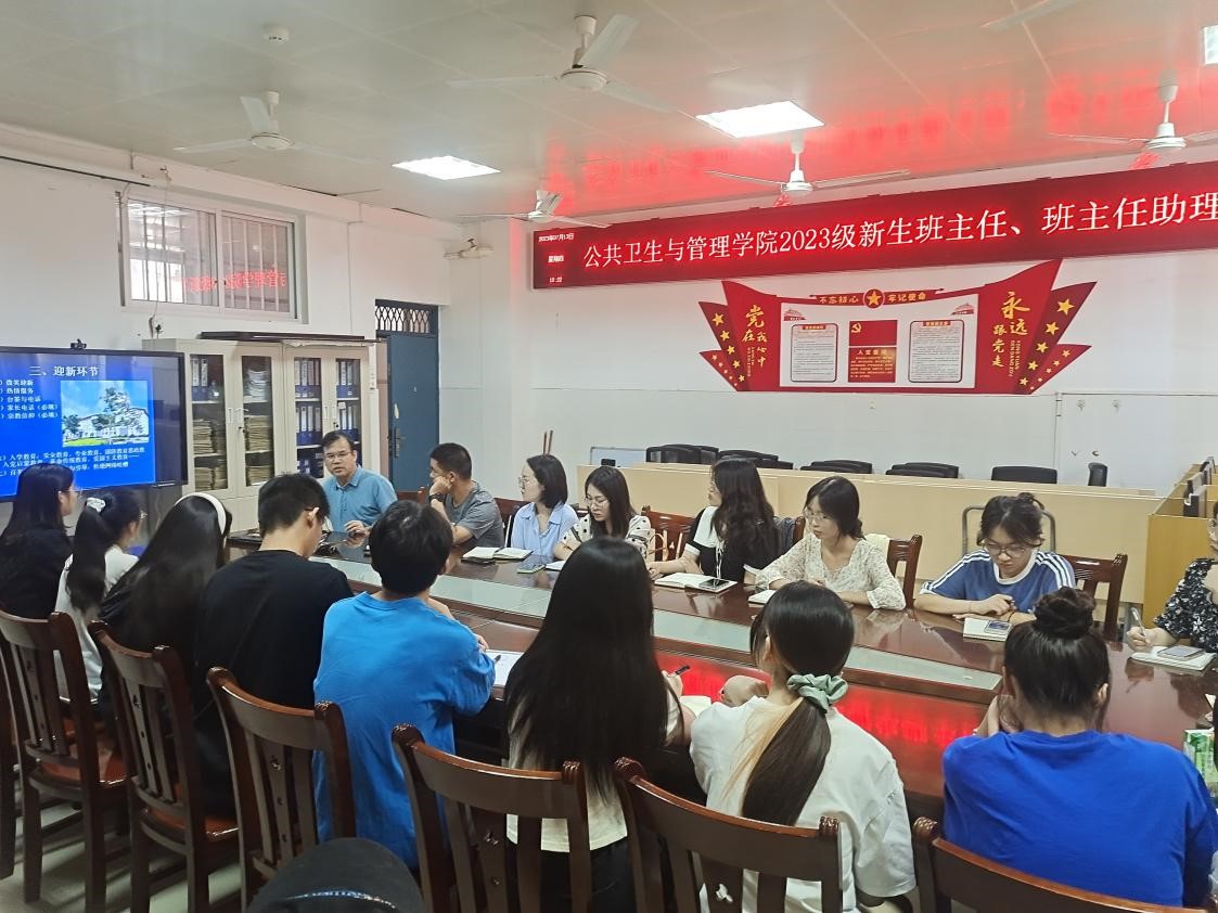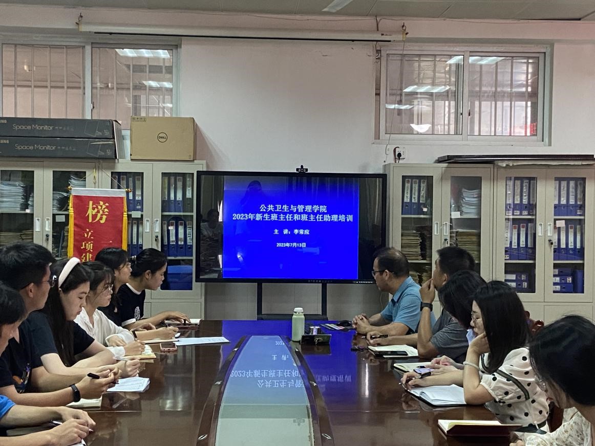 7月13日上午10:00,公共卫生与管理学院在6-810室举办2023级班主任、班主任助理培训,该院新生各班班主任、班主任助理和学生科辅导员参加培训。培训由该院党委书记李常应主讲,学生科辅导员韦艳春主持。