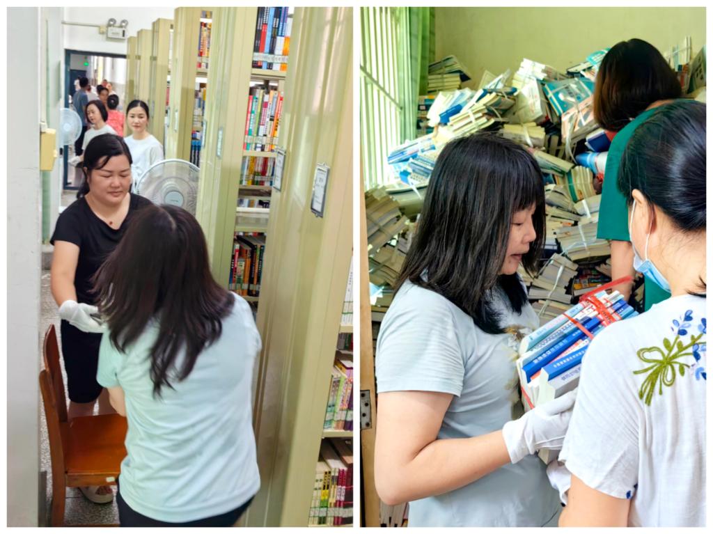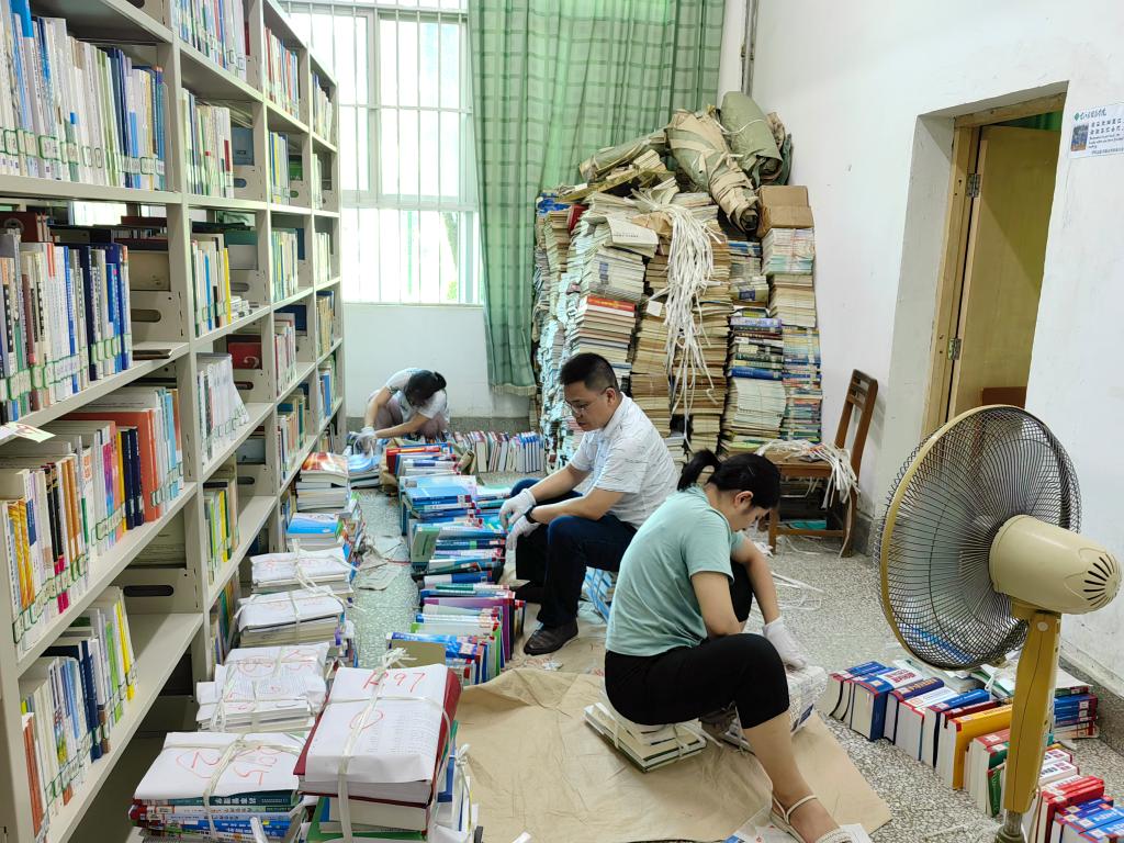 7月13日开始,图书馆为确保按时完成百东校区临时图书室图书的搬迁任务,全力抢抓搬迁进度,及时跟进搬迁进展,图书馆全体工作人员利用休息及周末时间,加班加点完成搬迁图书的馆藏标记、分类、排序及打包等工作。在图书下架打包的过程中,特别是在书库的狭小空间以及百色高温预警等环境中,全体职工挥汗如雨,但是大家都不叫苦不喊累不嫌脏,齐心协力投入到热火朝天的搬迁工作中。