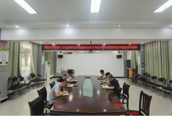 为深入学习贯彻习近平总书记重要讲话精神,推动学习贯彻习近平新时代中国特色社会主义思想主题教育学习成果转化为努力方向和自觉行动,助力药学院高质量发展。7月26日下午,药学院党委召开2023年第三次支部书记例会暨传达学习习近平总书记系列重要讲话精神,药学院领导班子成员、党政办主任、党委组织员、各支部书记参加会议。会议由学院党委书记陈秉朴主持。