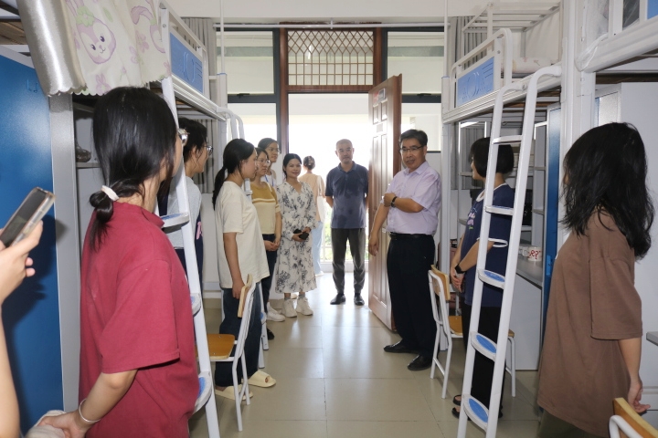 陈秉朴书记在走访新生宿舍