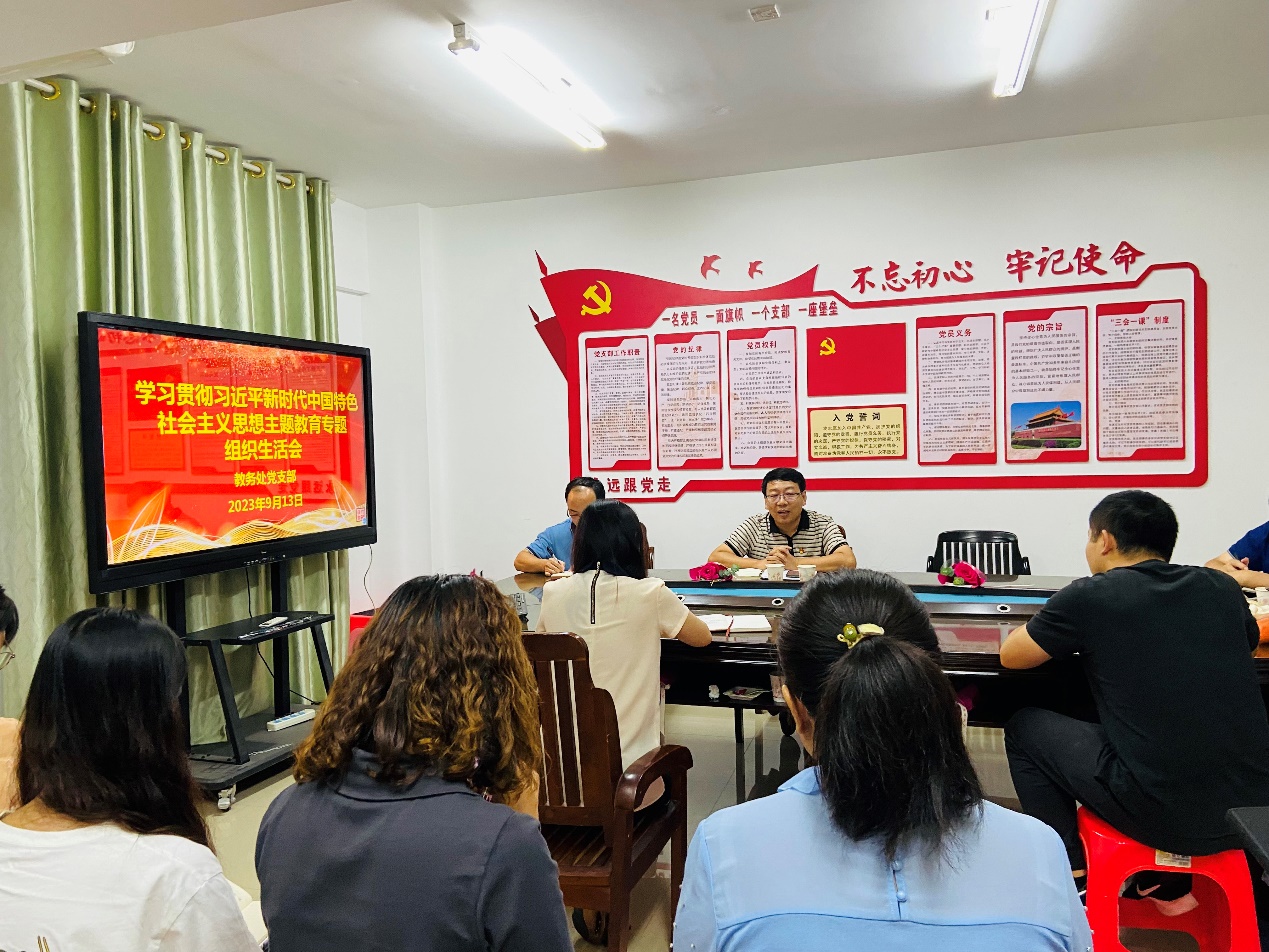 为深入推进学习贯彻习近平新时代中国特色社会主义思想主题教育,推动教务处教学管理工作落到实处,推进教务处党支部党建工作高质量发展。9月13日,教务处党支部在支部活动室召开9月份第一次三三三政治理论学习会,学校党委常委、副校长王俊利出席,会议由黄翦副书记主持,教务处全体人员参加会议。