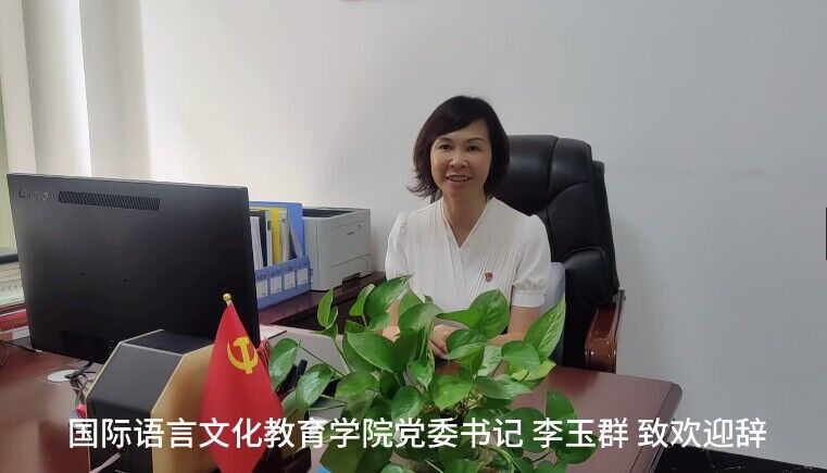 典礼伊始,学院党委李玉群书记通过录制视频寄语2023级新生,欢迎新同学的到来。李书记希望同学们尽快融入国际语言文化教育学院集体大家庭,努力学好专业知识,成为有国际视野、有语言技能、有文化素养的高素质、能创新的复合型英语专业人才,不负韶华,用奋斗谱写最美的青春华章。