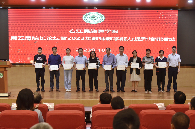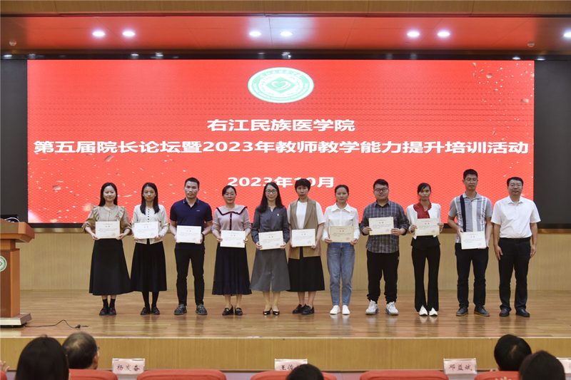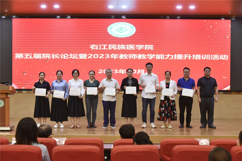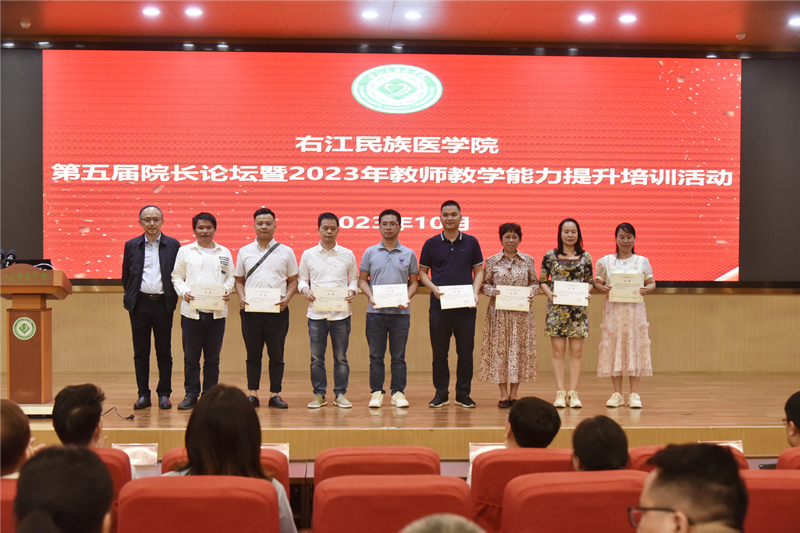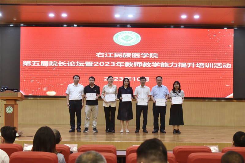 教学查房培训结束后,全体教师前往必赢242net官网国际会议中心二楼学术报告厅参加结业证书颁发仪式。必赢242net官网党委常委、副校长王俊利,右医附院杨发奋副书记、潘征副院长、蓝常贡副院长、邓益斌副院长为授课专家及必赢242net官网直属附属医院、附属西南医院新入职教师和非直属附属医院授课教师颁发结业证书。
