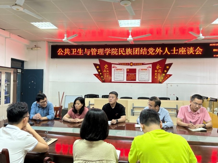 10月25日下午,公共卫生与管理学院在6栋810会议室召开2023年党外人士暨“双高”人才代表座谈会。该院党委书记李常应、副院长梁建成出席座谈会,该院九三学社、民盟等民主党派教师、党外高学历高职称教师代表共14人参加座谈会。
