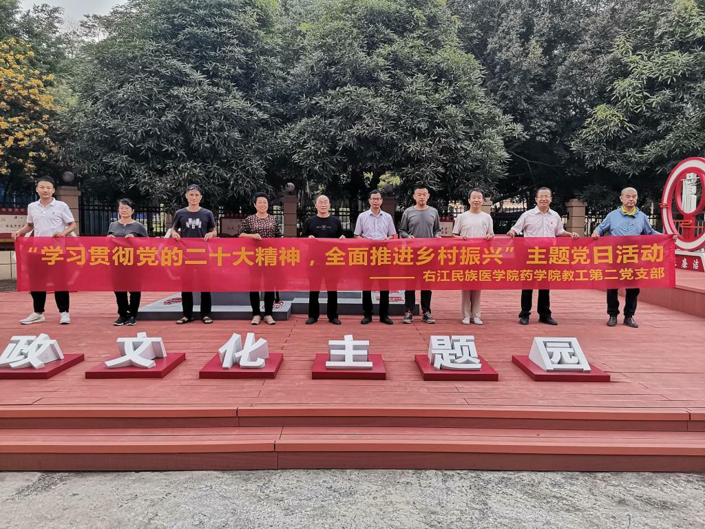 10月31日,药学院教工第二党支部书记陆世惠博士带领支部全体党员到百色市百林林场开展“学习贯彻党的二十大精神,全面推进乡村振兴”主题党日活动,这是学习贯彻习近平新时代中国特色社会主义思想主题教育的具体举措。