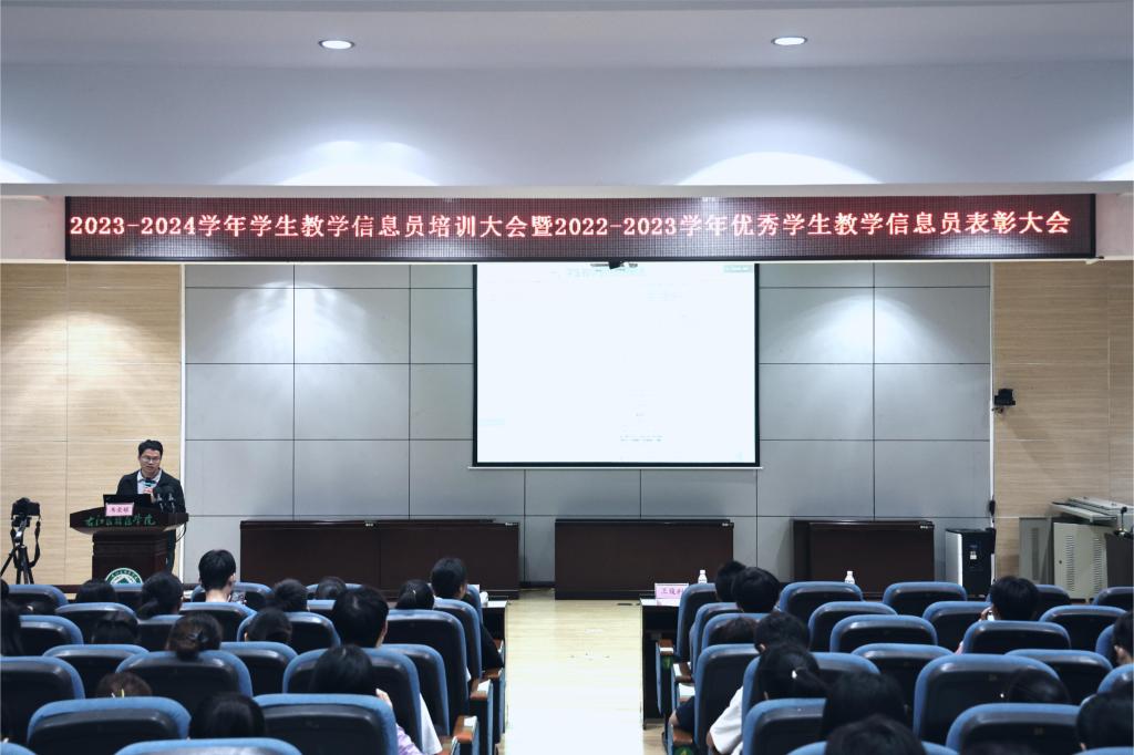 为加强学生教学信息员队伍建设,提高教学信息反馈质量,充分发挥学生参与教学管理和自我管理、自我教育的主体作用,11月1日下午,必赢官网在校本部5-101学术报告厅(主会场)及百东校区守正楼C-106教室(分会场),举办2023-2024学年学生教学信息员培训大会暨2022-2023学年优秀学生教学信息员表彰大会,共有196名优秀学生教学信息员代表及学生教学信息站站长参加会议。学校党委常委、副校长王俊利,学校总督学姚金光出席会议,会议由教育评价与教师发展中心主任黄秀峰主持。