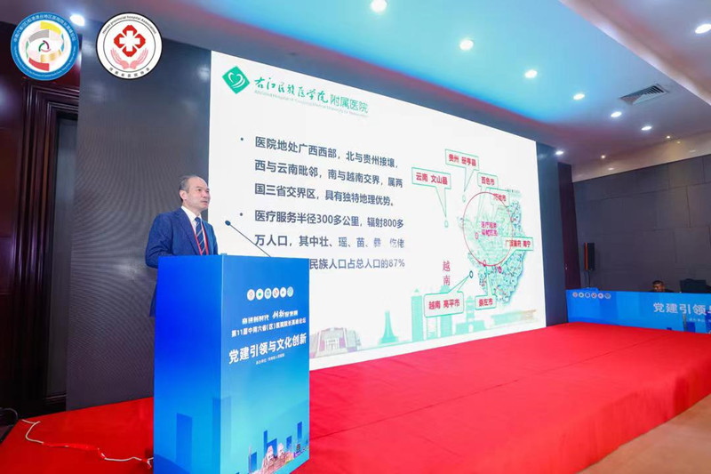 我院党委书记、中国医院协会医院文化专业委员会副主任委员、广西医院协会医院文化建设专业委员会主任委员林栩教授在党建引领与文化创新分论坛作专题学术报告