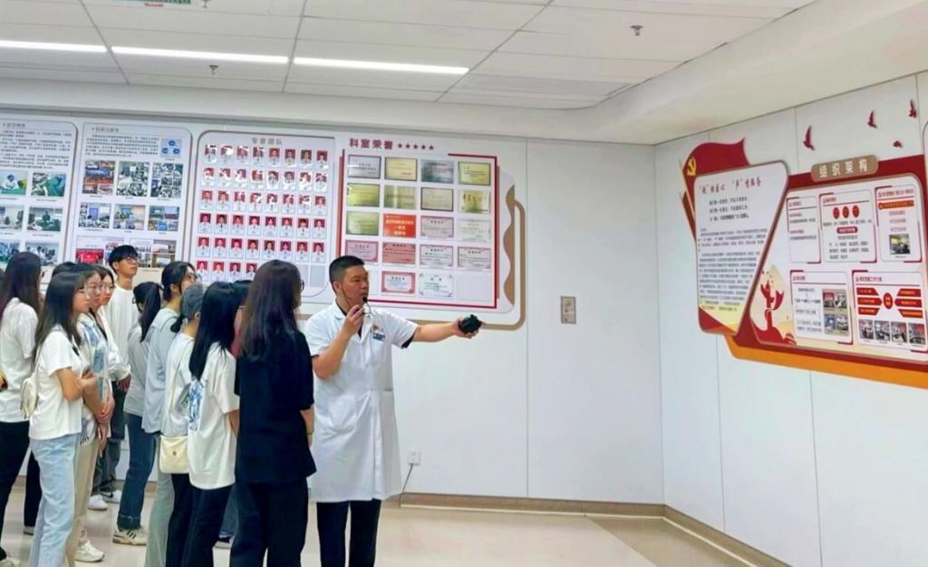 在百东院区中,各科室主任带领同学们学习了医院先进的医疗设备使用方法以及医疗技术,并进入了超声科和放射科的操作区,现场观摩老师操作医疗设备。同时,同学们从医院的文化长廊参观中对医院四十年来从只有八十几张床铺的“草棚医院”,到如今现代化高科技医院大楼的发展历程有了更深入的了解。