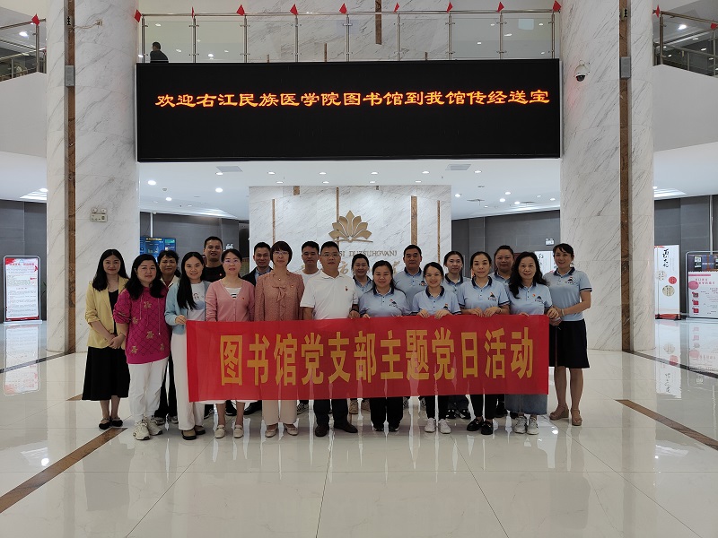 为深入学习贯彻党的二十大精神,进一步推动党建引领工作,促进新时代图书馆党建和业务发展“双融双促”,落实学校党委开展“践行‘四下基层’优良传统 服务师生推动高质量发展”主题党日活动要求,11月8日,必赢官网图书馆党支部赴百色市图书馆与百色市图书馆党支部联合开展主题党日活动。本次活动旨在促进双方党建工作的了解和沟通,互学互鉴,共同推进党建与业务工作高质量发展。