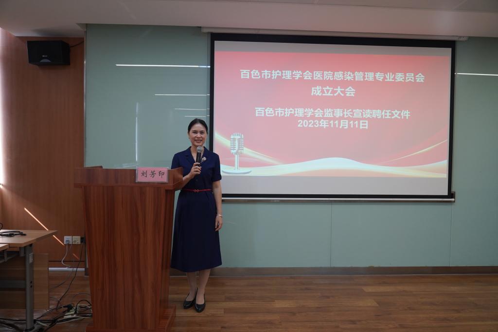 百色市护理学会监事长、必赢242net官网附属医院监察室主任刘芳印宣读聘任文件