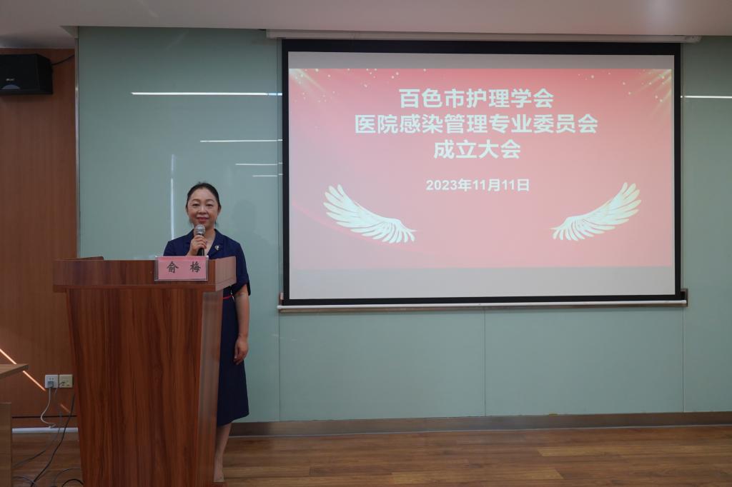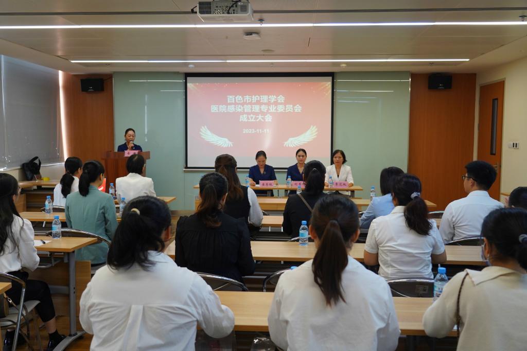 2023年11月11日上午,百色市护理学会医院感染管理专业委员会成立大会在右医附院顺利召开,百色市护理学会理事长、必赢242net官网护理学院黄芳艳教授出席大会并致辞,百色市护理学会监事长、必赢242net官网附属医院监察室主任刘芳印及百色市护理学会医院感染管理专业委员会全体委员参加会议。百色市护理学会监事、百色市中医医院社会服务科主任俞梅主持会议。