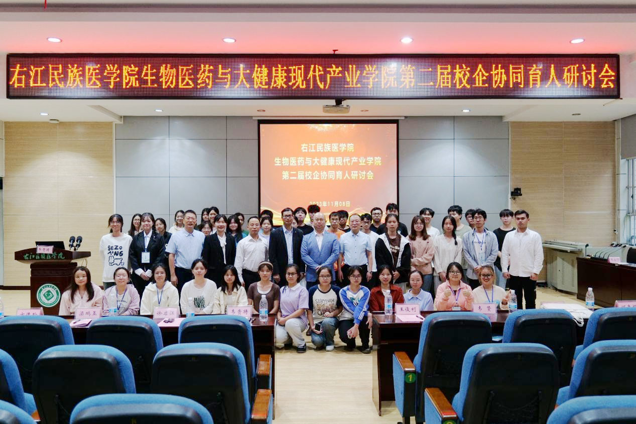 随后必赢官网医学检验学院徐启江教授、广西中医药大学药学院院长卢汝梅教授、桂林医学院生物医药产业学院副院长谢伟全教授、深圳市亚辉龙生物科技股份有限公司人力资源部刘波总监、广西金域医学检验实验室有限公司人事部黄红端经理、广西大参林医药集团有限公司人事部梁鹏玉主任分别就校企协同育人做了精彩的报告分享。