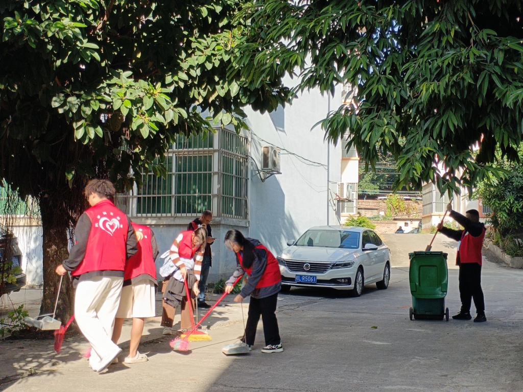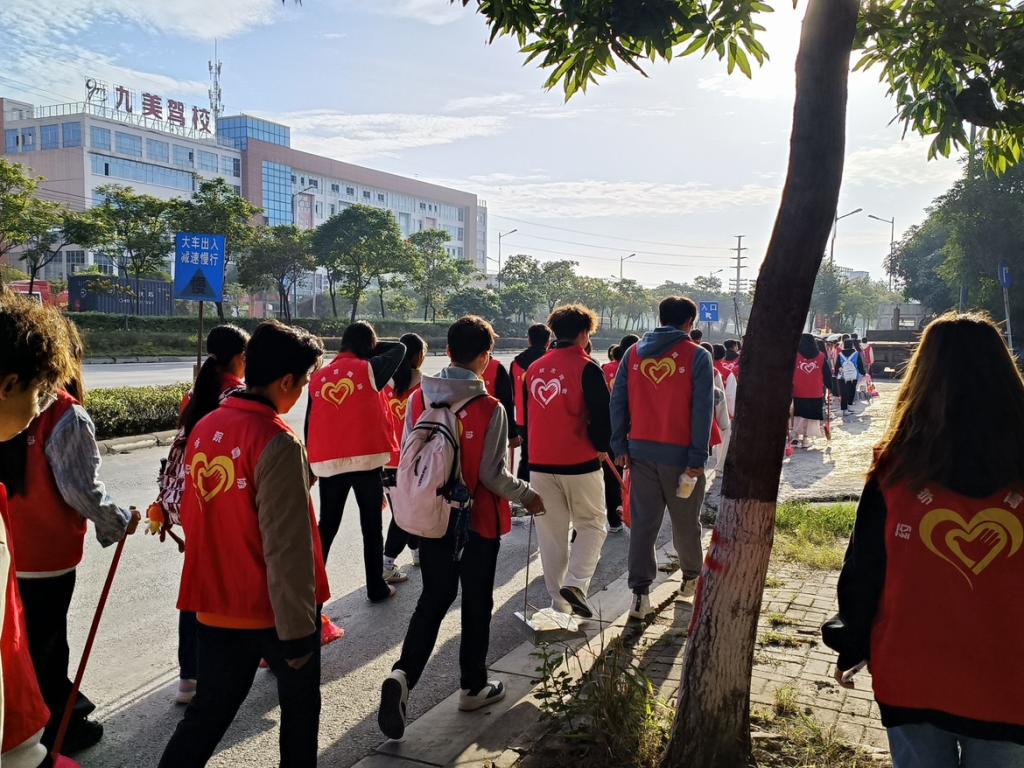 上午8点30分,药学院志愿者在百东校区北门集合,带上清洁工具、穿上红马甲,在药学院学生科黄云晟老师的带领下,有序的步行前往侨吉社区。