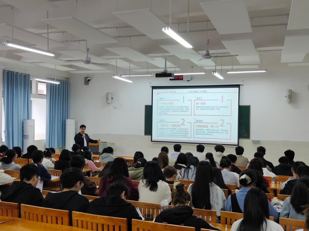 26日上午,药学院党委书记陈秉朴老师以“学习践悟二十大,踔厉奋发向党行”为主题进行授课。他指出深入学习党的二十大精神的重要性,详细解读了党的二十大精神,并殷切希望大家要成为有理想、敢担当、能吃苦、肯奋斗的新时代好青年。