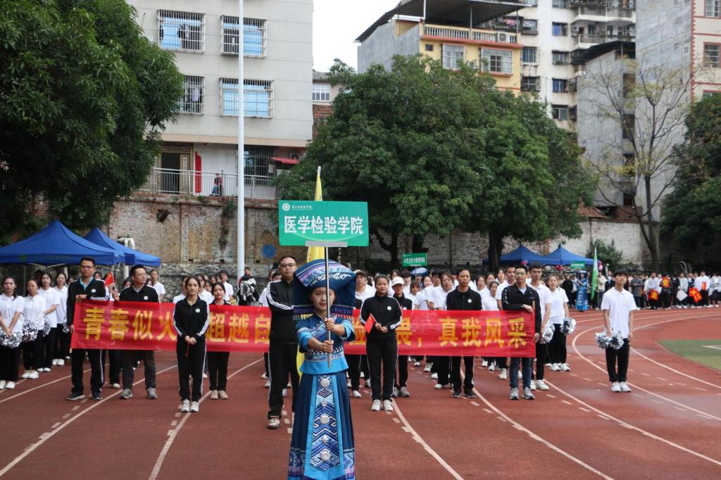 医学检验学院代表队在开幕式上的表演充分展现了学院师生坚持不懈、奋力拼搏的体育运动精神,我院师生运动健儿们将秉承“更高、更快、更强”的奥运精神不断向目标前进。