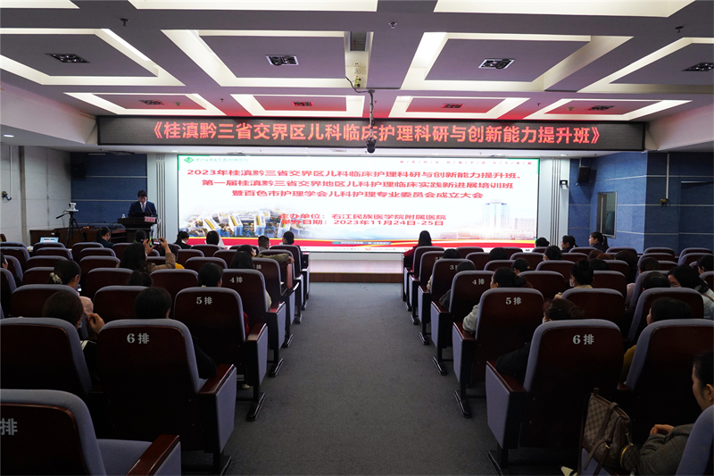 2023年11月24—25日,临床医学院(附属医院)在总院区外科五楼多功能厅举办自治区级医学继教项目《桂滇黔三省交界区儿科临床护理科研与创新能力提升班》《第一届儿科护理临床实践新进展培训班》,邀请区内外儿科护理领域的专家、学者齐聚红城百色,共同探讨交流儿科护理专业研究领域的新理论、新技术和新方法,通过开展科研相关知识培训,进一步提升桂滇黔三省交界区儿科护理人的临床护理业务能力和科研水平。