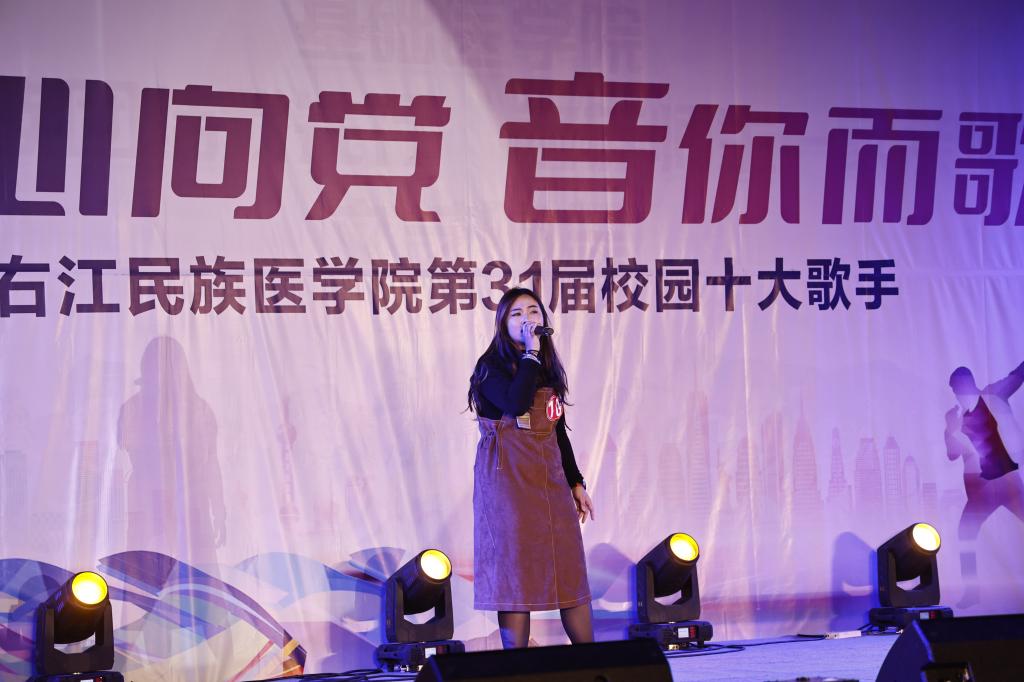 经过初赛复赛的层层选拔,共有12名选手脱颖而出,成功晋级决赛。选手韦珊珊以一首《price tag》拉开了预决赛的帷幕,歌曲极具节奏感,给人以开头即高潮的即听感,带给观众满满的震撼与澎湃;韦馨的《forever young》唱出了年轻人应有的心态与活力,生命如斯短暂,唯快乐是最大的意义,希望我们永远年轻;赵菲飞的《一笑倾城》让我们意识到青春是那么美好,在这段不可复制的旅途当中,我们拥有独一无二的记忆……期间,担任评委的韩易洲老师老师和孙东旭分别为献唱,台下观众们齐声并唱,歌声阵阵,将晚上氛围推向了高潮。