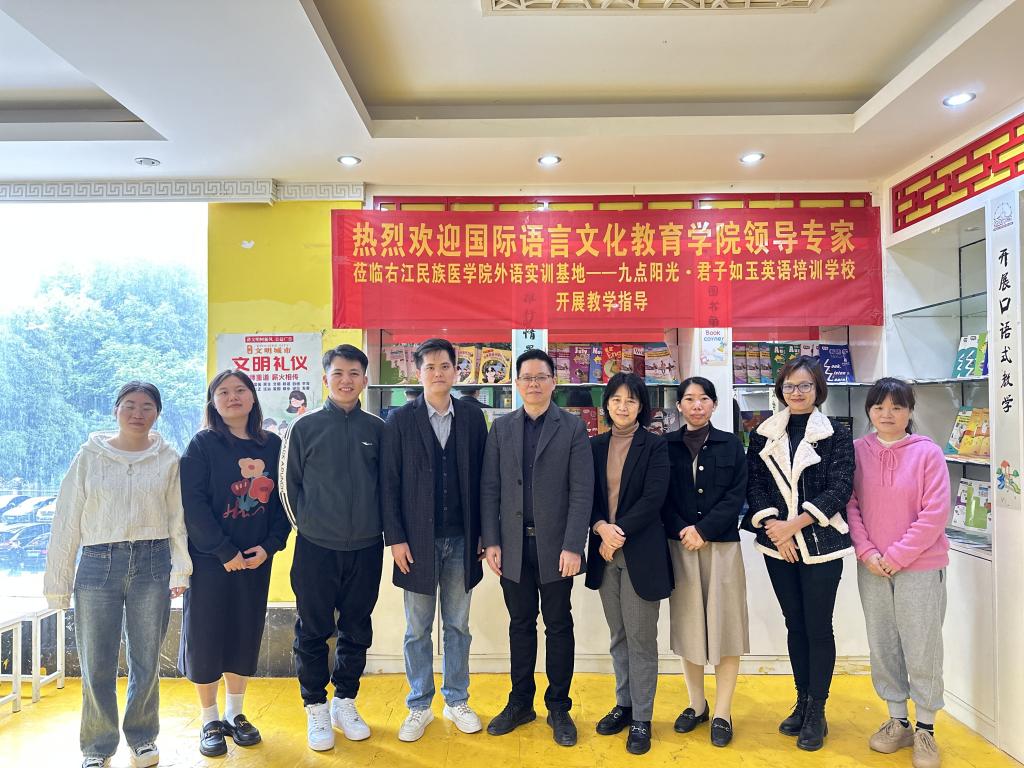 为了加强与企业的交流合作,提升英语专业学生的实习实训质量,国际语言文化教育学院党委书记、院长潘廷将近日带队前往学校外语教学实训基地——九点阳光英语培训学校进行实地调研,并开展访企拓岗活动。学院党委副书记张剑、教学科科长江利娟、学生科科长蒙丽莎等一同参加活动。