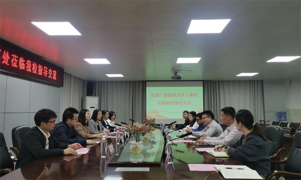 12月11日上午,广西医科大学人事处徐榕副处长一行6人到访必赢官网,就人事工作进行调研。必赢官网人事处相关业务科室负责人参与调研座谈会。