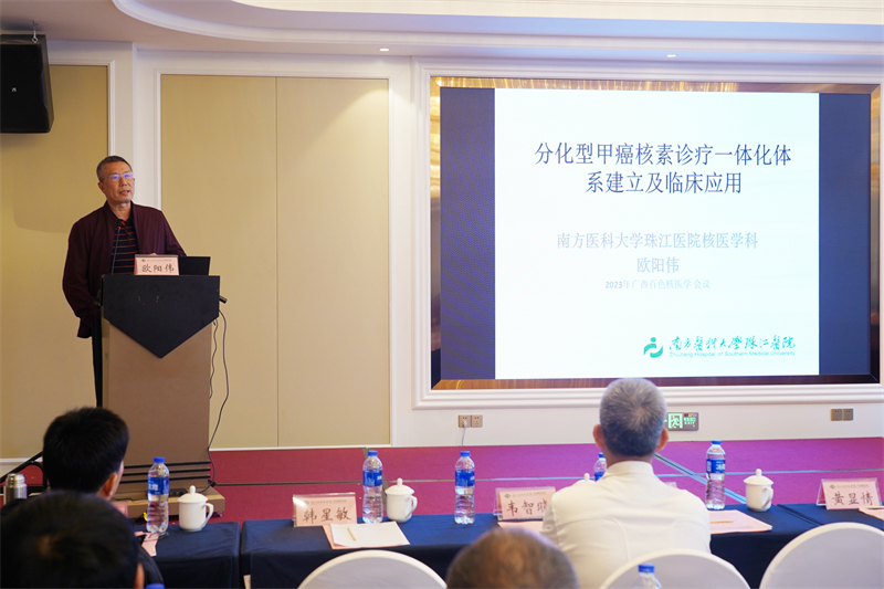 南方医科大学珠江医院核医学科主任、中华医学会核医学分会全国委员、中国核学会核医学分会理事、广东省医学会核医学分会主任委员欧阳伟教授作《分化型甲癌核素诊疗一体化体系的建立及临床应用》专题讲座