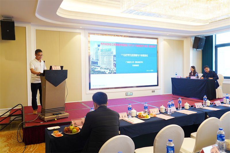 广西医科大学第一附属医院核医学科主任、广西医学会核医学分会主任委员、广西医师协会核医学分会会长、广西核医学专科联盟会长、广西核医学质控中心主任韦智晓教授作《131I治疗甲亢的策略及个体精准化》专题讲座