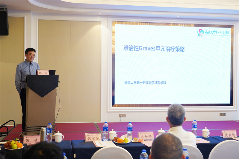 南昌大学第一附属医院核医学科主任、江西省医学会核医学分会主任委员、中华医学会核医学分会委员、中国医师协会核医学医师分会常务委员兼治疗学组副组长张青教授作《难治性Graves甲亢治疗策略》专题讲座