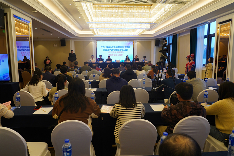 中国医学科学院、北京协和医学院核医学教研室主任、核医学分子靶向诊疗北京市重点实验室主任、中国医学装备协会核医学装备与技术专业委员会主任委员李方教授,上海交通大学医学院附属新华医院核医学科主任兼肿瘤中心主任、中华医学会核医学分会副主委、上海核医学分会荣誉主委、亚大核医学院院长、中国非公立医疗机构协会核医学与分子影像专业委员会主任委员王辉教授,广西医科大学第一附属医院核医学科主任、广西医学会核医学分会主任委员、广西医师协会核医学分会会长、广西核医学专科联盟会长、广西核医学质控中心主任韦智晓教授,我院核医学科副主任郑红宾博士分别在发言中表示,核医学的发展需要我们共同推动学科的进步,需要加强学术交流,分享经验和资源,实现优势互补,共同攻克难题。在这次学习班中,大家一起深入探讨核医学的最新技术和研究成果,包括核医学影像技术、放射性药物研发、放射治疗技术等方面,这些新技术和成果将为临床医学提供更加精准、安全、有效的诊治方案。