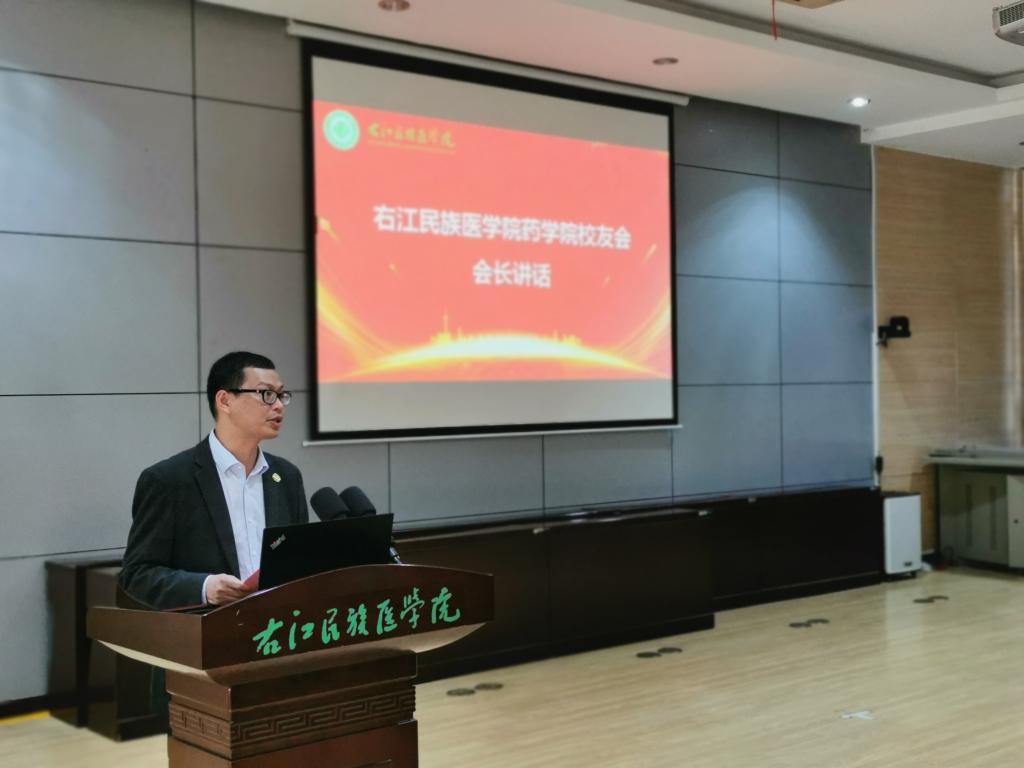 药学院院长韦贤作为药学院首届校友会会长在会上发言。他表示,校友是学院的骄傲,是学院发展历程的亲历者,也是学院最宝贵的财富和最靓丽的名片,更是学院未来发展最热情的关注者和最坚定的支持者,衷心地希望各位校友能够一如既往地关心、关爱、关注母校的发展,为母校的建设添砖加瓦,希望各位校友发展越来越好。