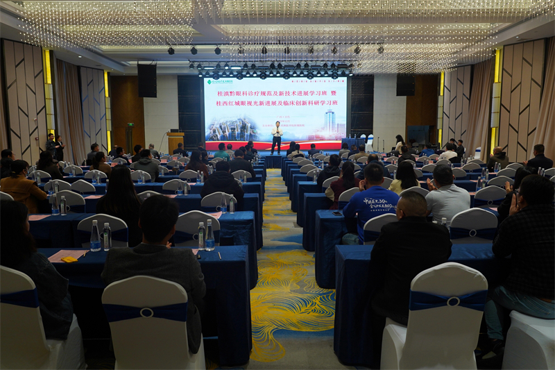 2023年12月16日,我院在百色城举办桂滇黔眼科诊疗规范及新技术进展学习班暨桂西红城眼视光新进展及临床创新科研学习班。广西医学会眼科学分会主任委员黄敏丽教授、我院潘征副院长和我院眼科主任、广西医学会眼科学分会副主任委员马文豪教授出席开班仪式并分别致辞。百色市医学会眼科学分会第三届委员会全体委员和来自桂滇黔三省交界区各级医疗机构从事眼科临床治疗的医务人员参加培训学习,我院眼科副主任梁高华教授主持开班仪式。