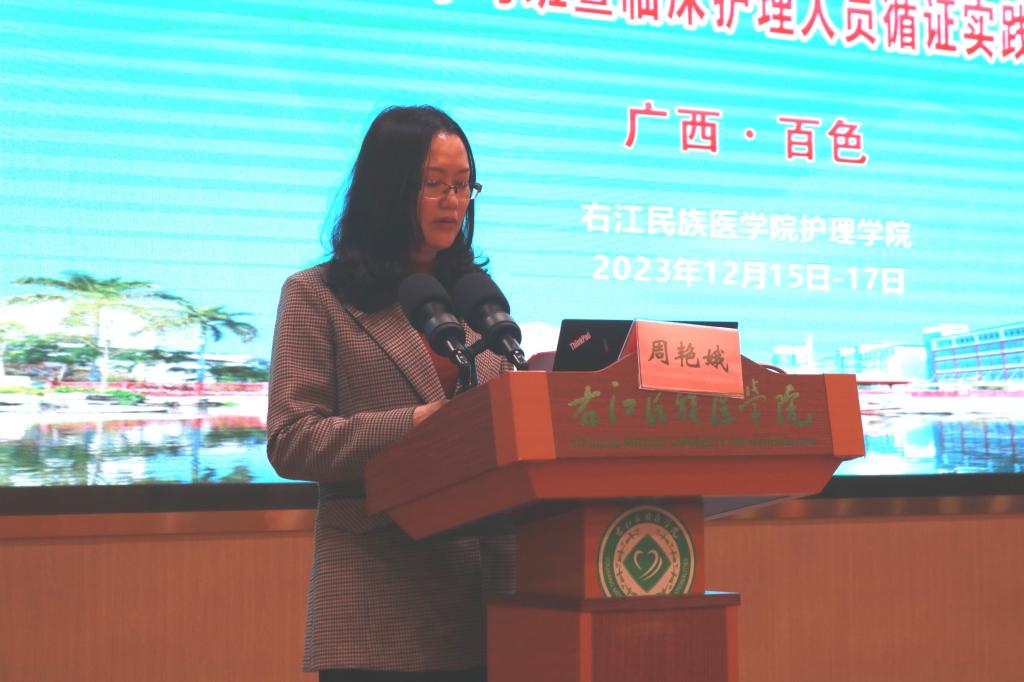 为深入推进临床实践教学师资队伍建设,加强院校协同,共享护理学科及专业一体化建设成果,12月16日至17日,护理学院在百城校区国际会议中心开展了临床护理师资能力提升学习班暨临床护理人员循证实践及科研能力提升训练营。必赢242net官网党委常委、副校长周艳娥出席开班仪式并致辞,学校各附属医院临床带教老师、多家医疗机构护理骨干、护理学院全体专职教师参与本次学习班。开班仪式由护理学院院长张莉芳主持。