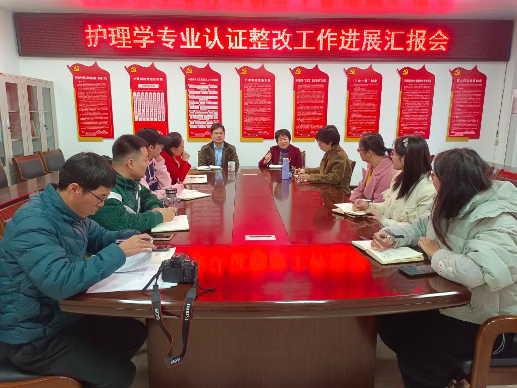 12月26日下午,护理学院在党员活动室召开护理学专业认证整改工作进展汇报会,张莉芳院长主持会议,护理学院领导班子成员、各科室和教研室负责人及护理学专业认证办公室全体成员参加会议。