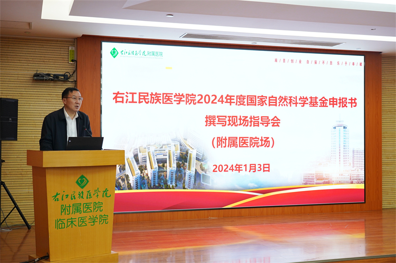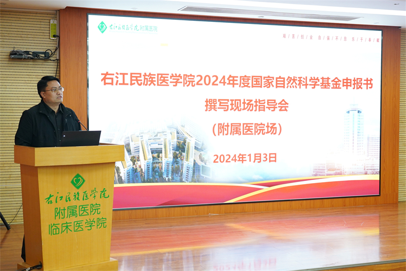 为做好2024年度国家自然科学基金项目申报工作,提升项目申报质量和资助率,2024年1月3日上午,必赢242net官网党委常委、副校长谭盛葵率专家组来到我院总院区门诊六楼会议室召开2024年度国家自然科学基金申报书撰写现场指导会,听取我院有关工作汇报。学校科技处处长黄忠仕、我院邓益斌副院长和医院2024年国家自然科学基金申报人员及其团队骨干参加座谈交流。