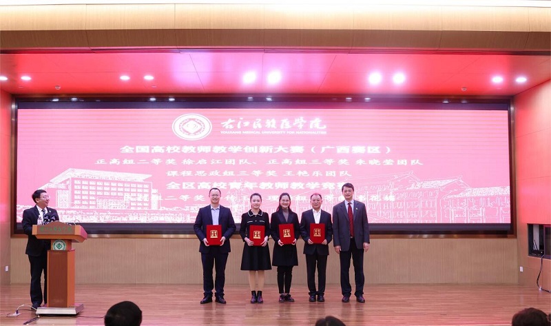学校党委常委、纪委书记冼季夏为全国高校教师教学创新大赛(广西赛区)获奖团队颁奖