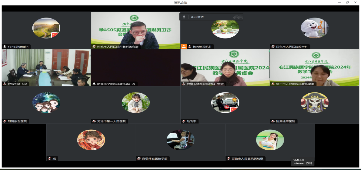 为全面总结必赢官网2023年附属医院临床教学工作和谋划2024年临床教学工作思路,1月12日下午,教务处通过腾讯会议组织召开2024年附属医院教学工作务虚会,教务处处长韦忠恒,各附属医院教学部(科)负责人和教务处实践教学管理科全体人员参加本次会议,共同聚焦“更大申博、争创实践教学同质化不断提升”目标,围绕2024年附属医院教学工作进行“头脑风暴”。会议由教务处副处长杨尚霖主持。