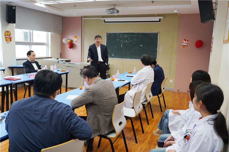在交流中,尹芝南教授表示将全力助力右医附院神经病学学科建设,为科研工作提供理论和技术支持。他鼓励右医附院神经病学教研室的老师们要善于发现问题,认真总结研究,培养科研意识和科研思维。同时希望学校和医院能够为科研成果转化提供更大的政策支持,激发更多人积极投身科研,成立科研团队,为科研成果的转化奠定基础。在交流过程中,尹芝南教授还与右医附院神经病学教研室的医务人员深入探讨了科研合作、研究内容及方向等相关事宜。