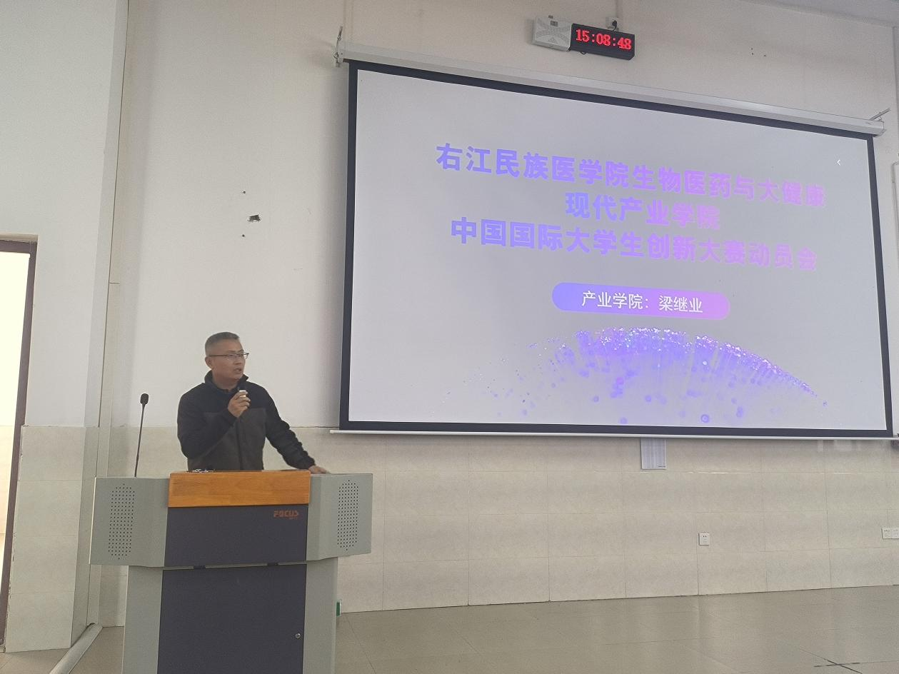 为推动必赢官网生物医药与大健康现代产业学院高质量发展,进一步深化产教融合,全面提升学生实践和创新能力,为国家大健康产业培育更多创新型人才。2024年1月15日下午,由产业学院和医学检验学院在百东校区守正楼C207教室共同组织召开了第十届中国国际大学生创新大赛启动会,会议邀请了生物医药与大健康现代产业学院办公室梁继业老师、医学检验学院2022级、2023级全体学生通过线上线下相结合的方式参加本次活动。