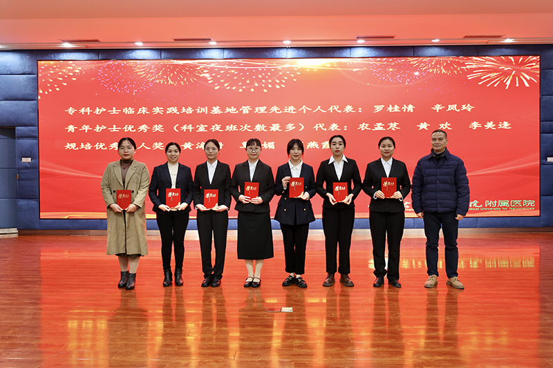 为总结年度护理工作经验、表彰先进和谋划未来护理学科发展,2024年1月26日晚,临床医学院(附属医院)在总院区学术报告厅召开2023年护理工作总结暨2024年工作部署大会,临床医学院(附属医院)党委林栩书记、韦忠恒院长、许靖副书记、梁楚晗纪委书记、邓益斌副院长、覃灵艳总会计师和全院行政职能职能部门负责人、临床科室主任、护长及护士代表等参加大会。