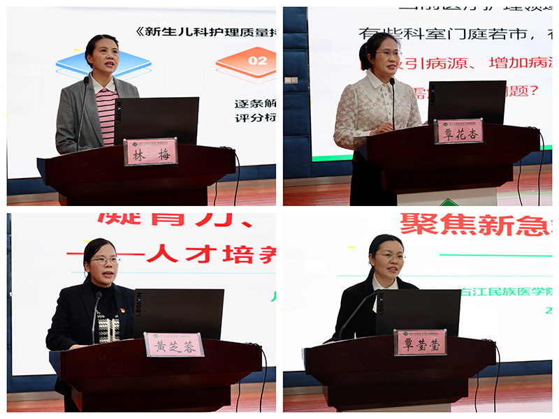 其后,临床医学院(附属医院)新生儿科、儿内科二病区、百东普通外科、急诊科等科室护士长相继在会上做了工作经验分享。他们分别从护理质量与安全管理制度创新落实、“一科一品”科室特色活动创建、护理骨干人才培养模式探索、多学科协同健康科普工作推进等各个方面充分展示了护理工作成效,让在场的护理同仁产生了强烈的共鸣,为各护理专科工作和学科发展提供了学习借鉴机会。