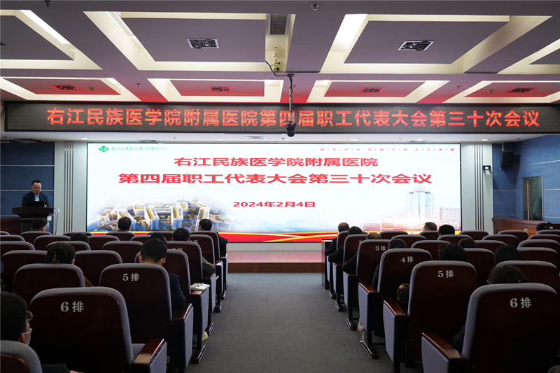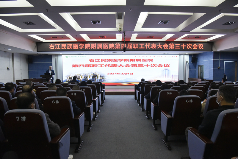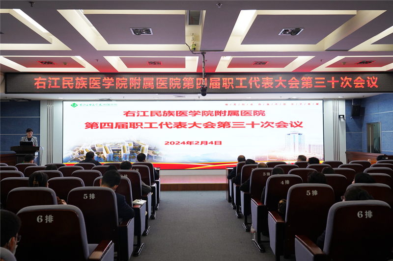 2024年2月4日下午,临床医学院(附属医院)第四届职工代表大会第三十次会议在总院区外科五楼多功能厅隆重召开,临床医学院(附属医院)党委书记林栩、院长韦忠恒、党委副书记许靖、陈文成,副院长邓益斌、潘征,纪委书记梁楚晗、副院长蓝常贡、总会计师覃灵艳和医院第四届职工代表大会正式代表参加会议。会议由陈文成主持。