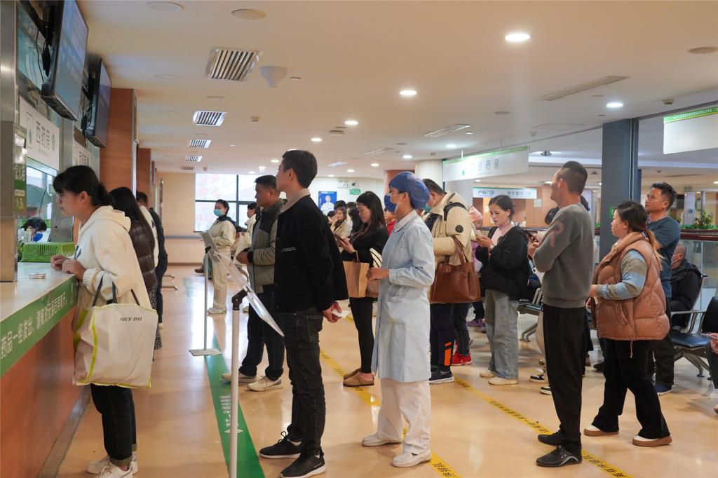 在医院就诊咨询台、一站式服务中心、取药窗口、自助打印区及各个诊室门口等,不少前来就诊人员在排队进行咨询和办理相关手续。面对突增的门诊患者,医院及时安排医护人员、导医等为患者提供解答咨询、引导就医、协助就诊人员挂号等服务,为就医人员提供更高效快捷的服务,不断提高窗口的服务质量和患者的就医体验。