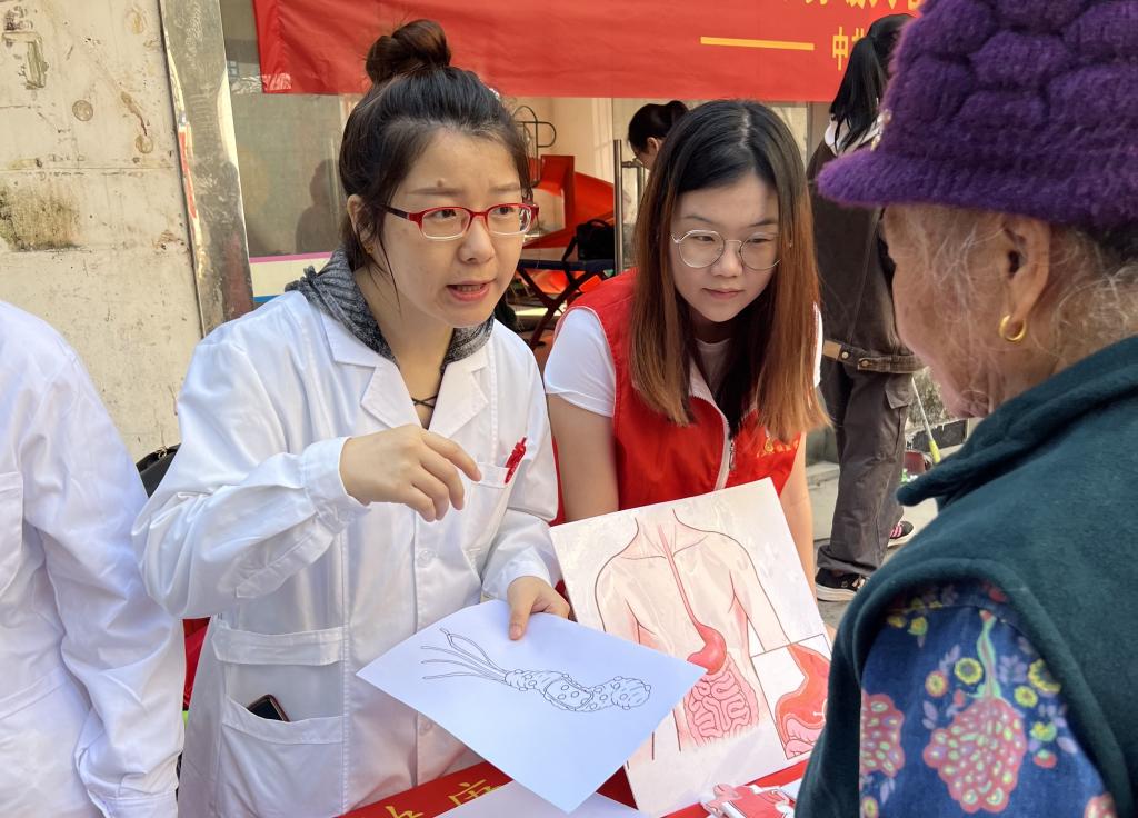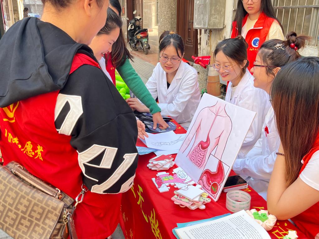 “桂无幽”团队和全科医学院、口腔医学院等在百城街道东合社区服务中心开展公益活动。