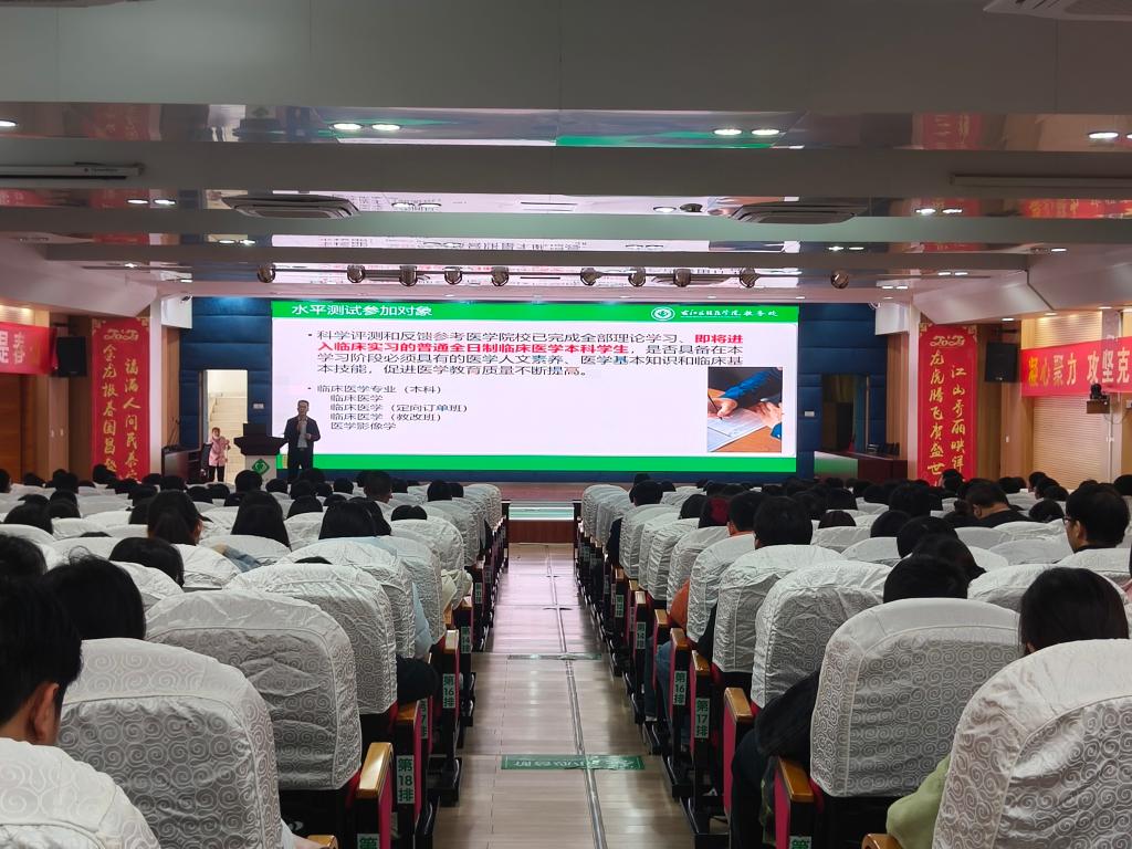 为有效助力学生高质量通过2024年国家临床医学专业水平测试,3月14日,学校教务处组织召开2024年临床医学本科专业水平测试说明会。临床医学院教学部,西南临床医学院教学科,全科医学院学生科,医学影像学院教学科、学生科老师和2020级临床医学、医学影像学本科专业1100多名同学参加会议。