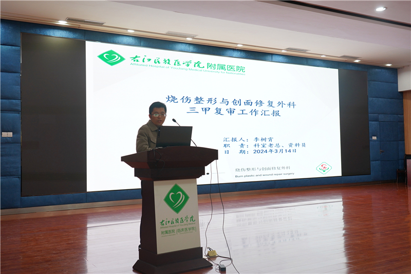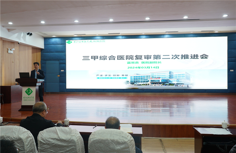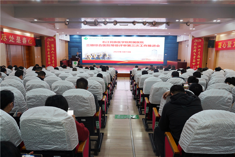 为进一步提升医院服务质量和管理水平,推动三级综合医院等级评审工作顺利开展,2024年3月14日晚,右医附院在总院区学术报告厅召开医院等级评审第三次工作推进会,右医附院党委林栩书记、韦忠恒院长、许靖副书记、陈文成副书记、邓益斌副院长、潘征副院长、梁楚晗纪委书记、蓝常贡副院长、覃灵艳总会计师和全院中层干部、总住院医师参加会议,右医附院许靖副书记主持会议。