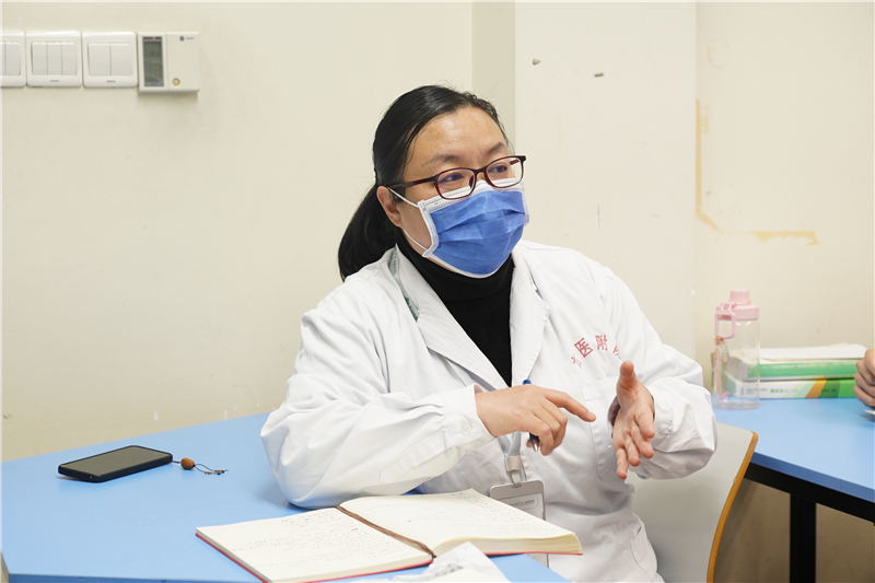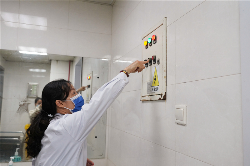右医附院感染管理科副科长(主持全面工作)周惠芳在专项督导现场。