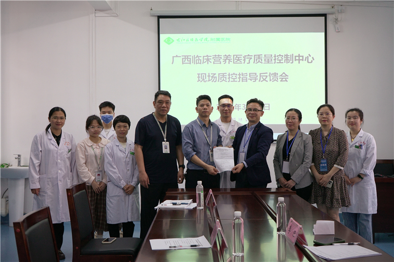 3月18日下午,广西临床营养专业医疗质量控制中心专家组一行3人到右医附院营养科开展营养现场质控指导工作,右医附院蓝常贡副院长、百色市卫健委专家、营养科医技人员及相关科室负责人陪同检查。