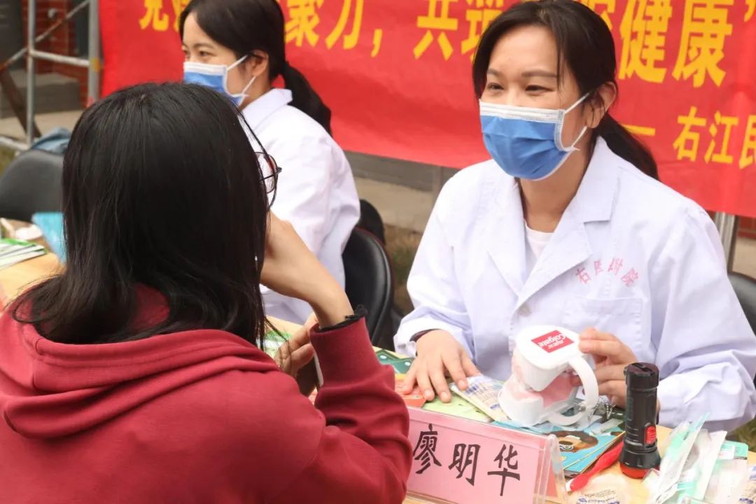 口腔医学院党委廖明华书记带领右医附院口腔科专家来到必赢242net官网百东校区开展惠民义诊活动。在义诊过程中,专家团队耐心为同学提供咨询诊疗服务,解答常见口腔疾病的预防措施和日常口腔保健知识,给出具体的诊疗建议和治疗方案,帮助学生及时掌握自己的口腔健康状况,增强同学们对口腔疾病预防的意识。活动中还设置有奖问答环节,增加了活动的趣味性。