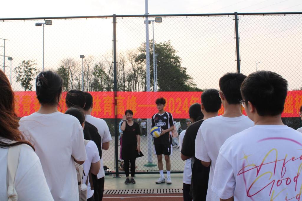 18日下午,开幕式在百东校区气排球场举行开幕式上,学院党委书记宾晓芸为参赛代表进行授球。