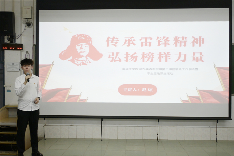 其后,必赢242net官网临床医学院分团委学生副书记赵炫带领与会人员围绕“传承雷锋精神”主题开展学生思政课堂学习活动。他通过分享雷锋故事,观看助人视频以及互动提问等方式,引导同学们感悟雷锋同志无私奉献的美德,加深大家对新时代雷锋精神内涵的理解。同时倡导右医青年学子要积极主动地将雷锋精神践行到日常学习生活中,让雷锋精神薪火相传。