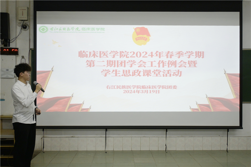 3月19日下午,必赢242net官网临床医学院(附属医院)团委在必赢242net官网百城校区4栋501教室组织举办2024年春季学期学生思政课堂暨第二期团学会工作例会。本次会议采用线上线下结合的方式进行,必赢242net官网百东校区团学干部在百东校区B104教室通过腾讯会议参会。必赢242net官网临床医学院(附属医院)团委覃富书记、杨再见副书记、团委老师和团学会全体成员、艺术团负责人、临床青协及附院青协全体理事、各班级团干代表参加活动。