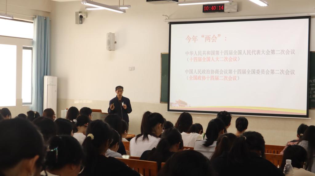 来自全校各个班级的280多名同学积极报名并到场参加了学习活动,共同深入学习2024年全国两会精神。学习会以观看视频、专题辅导、交流研讨等形式开展。首先,与会同学一起观看了两会开幕式、政府工作报告以及习近平总书记“下团组”活动重要讲话的新闻视频回放片段,直观感受两会召开的盛况和意义。随后,“中特”协会社团指导老师李敬英老师给大家作了两会精神的学习辅导。李老师从我国两会的历史沿革及两会的运作特点给同学们讲解阐释了两会活动的“国是”意义、所反映的我国社会主义民主政治的突出特点和显著优势。李老师还着重以2023年回顾、2024年经济社会发展总体要求和政策取向、2024年政府主要任务等三方面概括和阐述了今年政府工作报告的主要内容和精神,帮助同学们深入了解国家发展的新战略、新目标和新举措,提振同学们对“中国发展必将长风破浪、未来可期!”的信心和自豪。在活动的最后环节,同学们积极发言,结合自身学习实际,畅谈心得体会,展望美好未来,并就两会热词如“新质生产力”“无效需求”等问题与老师通过问答形式进行了互动交流。